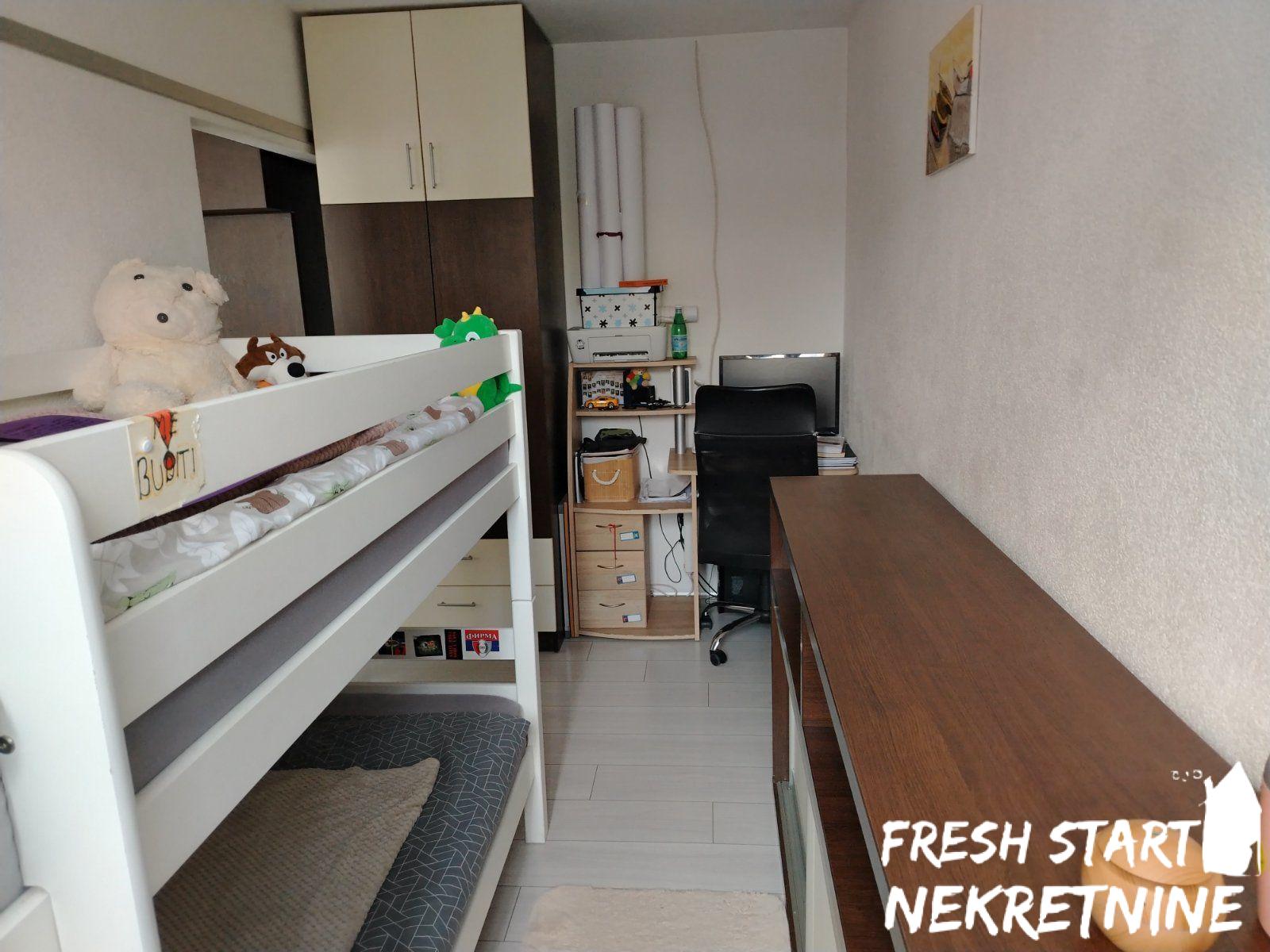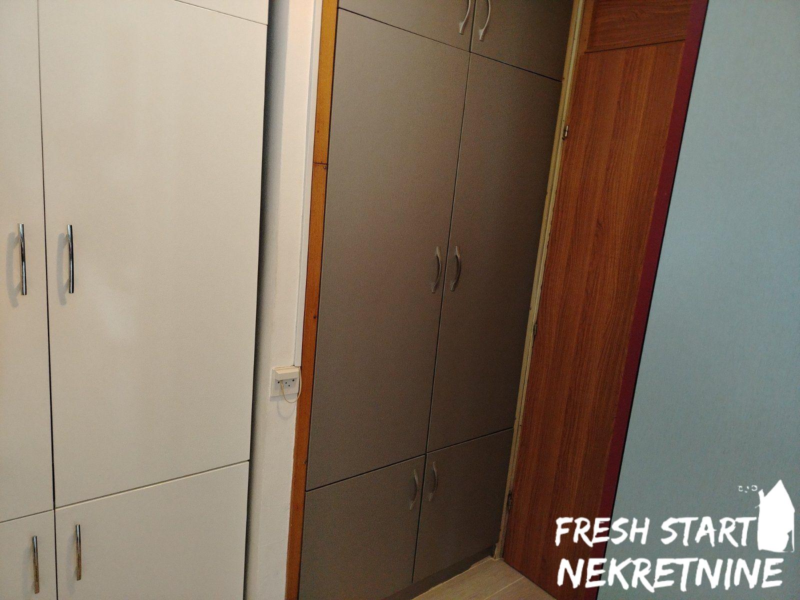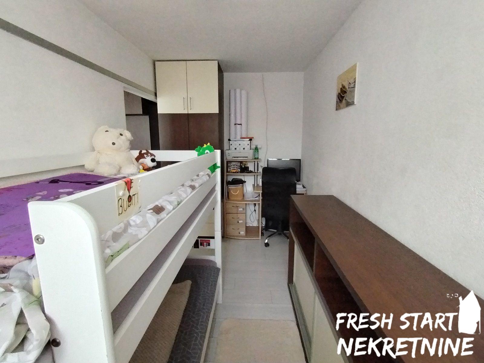 Kompletno je namješten, u cijenu ulaze sve stvari izuzev kreveta na sprat, komode i radnog stola u dječijoj sobi. Prostor je maksimalno iskorišćen, sve je rađeno po mjeri, dodatna ulaganja nisu potrebna.
