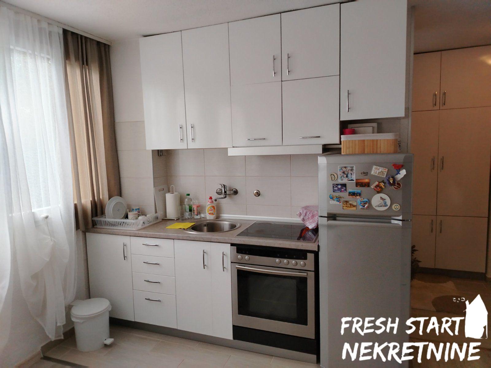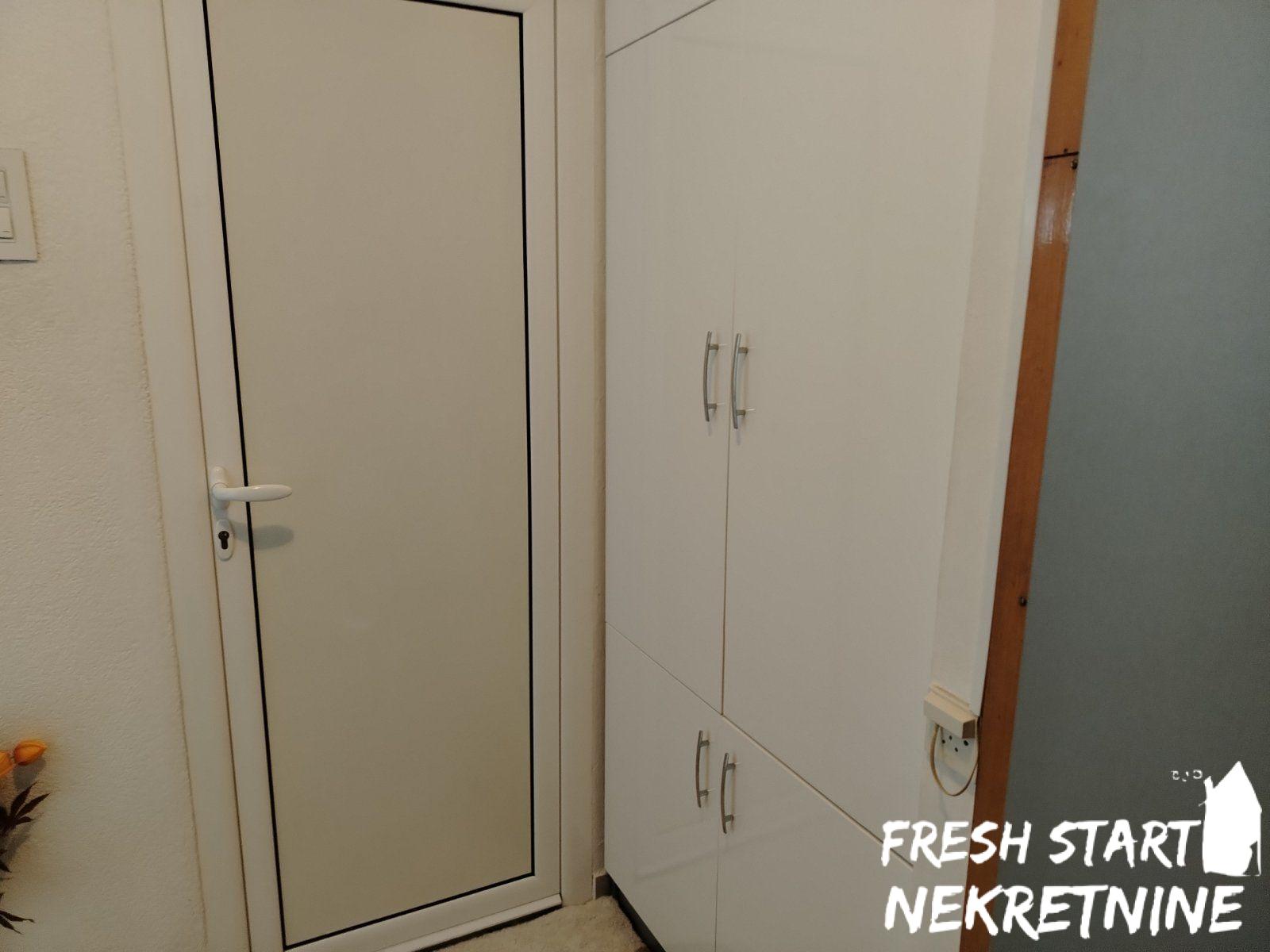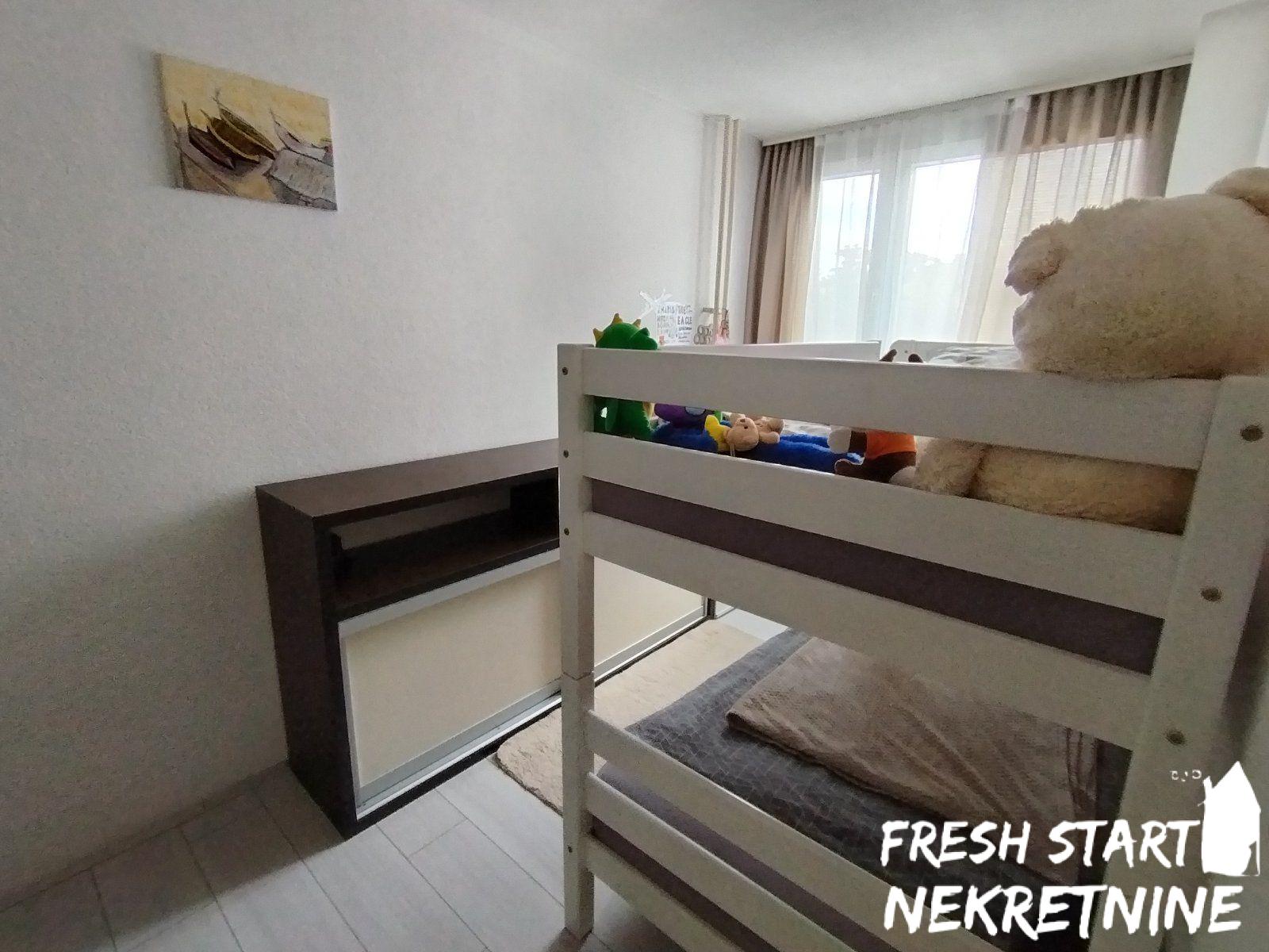 Kompletno je namješten, u cijenu ulaze sve stvari izuzev kreveta na sprat, komode i radnog stola u dječijoj sobi. Prostor je maksimalno iskorišćen, sve je rađeno po mjeri, dodatna ulaganja nisu potrebna.