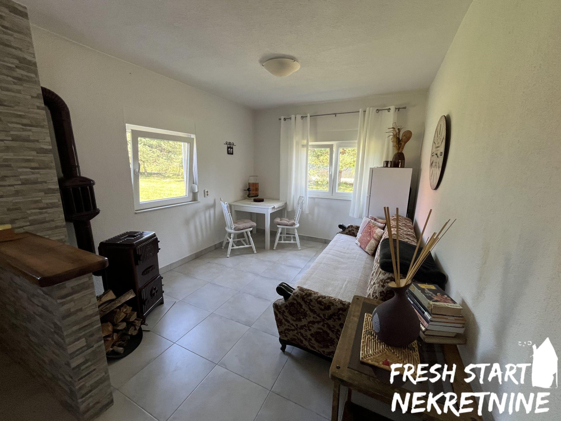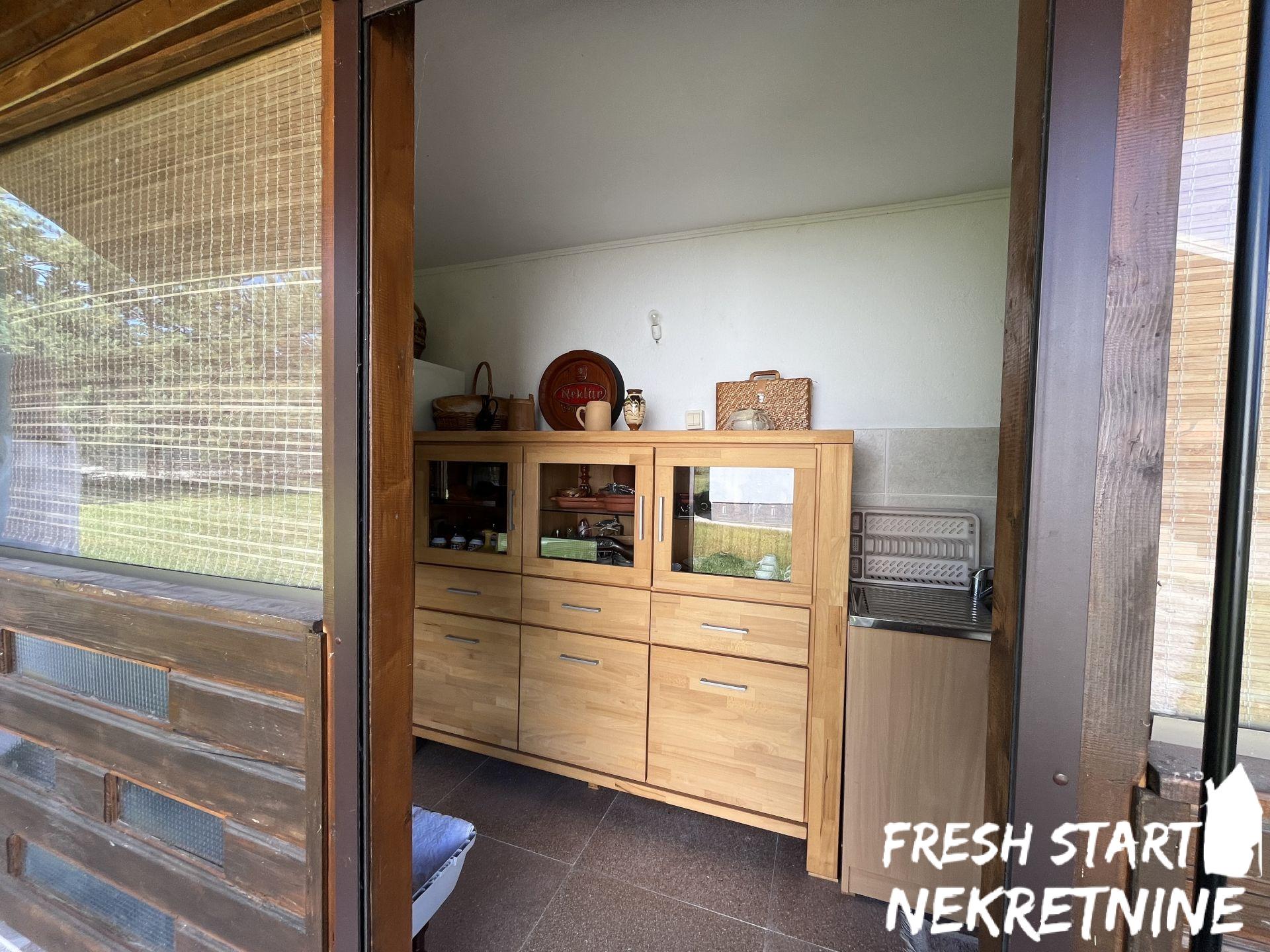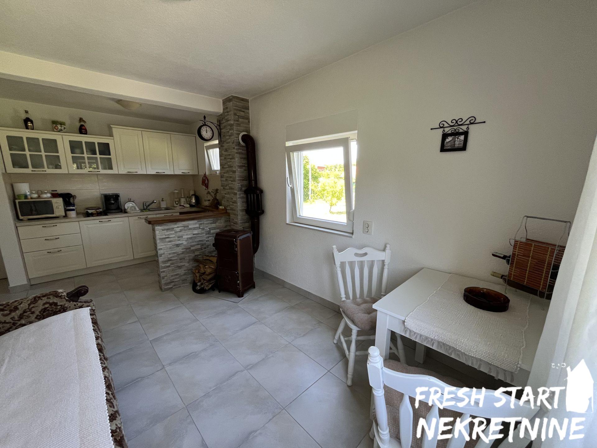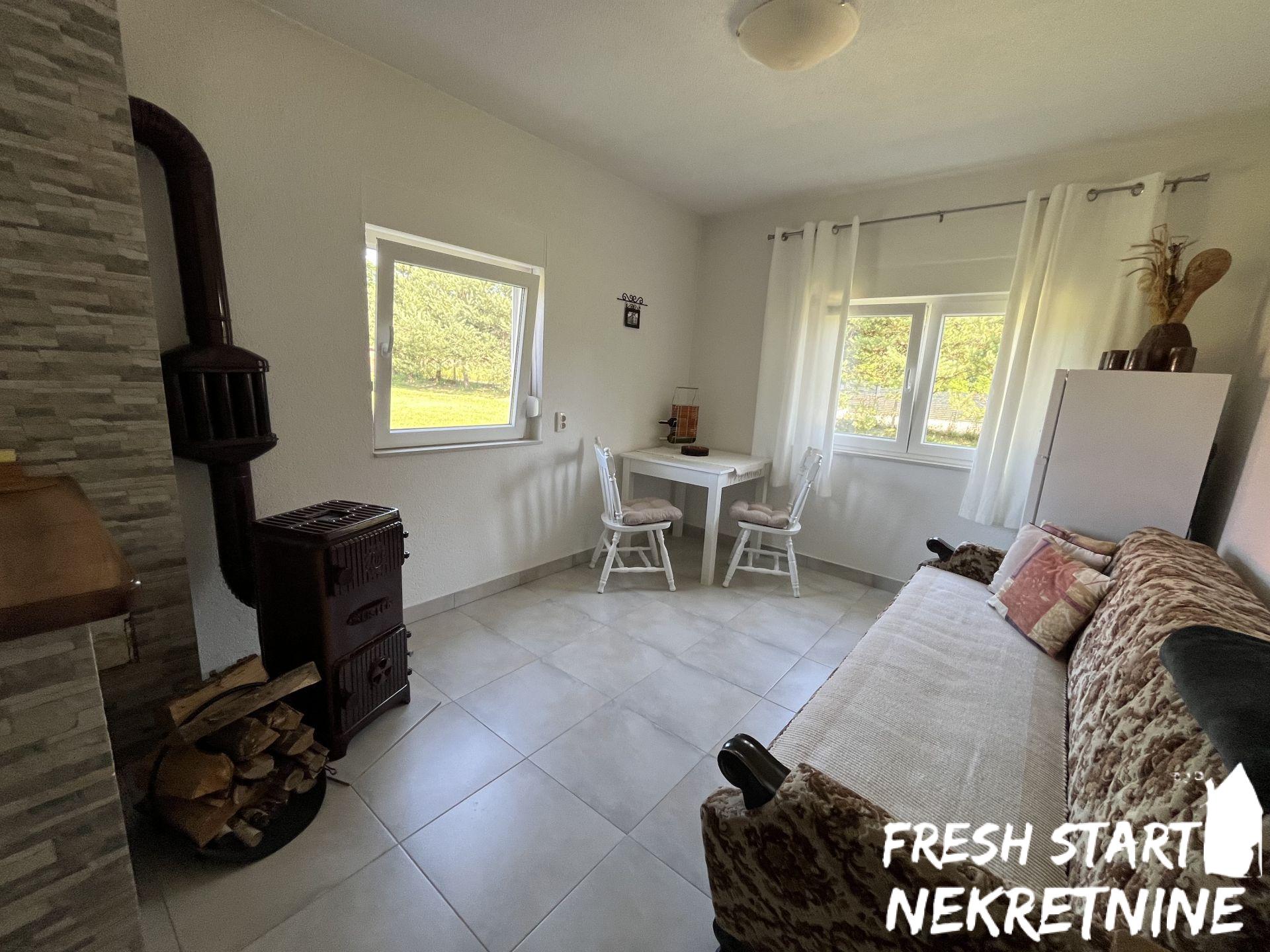Vikendica je u potpunosti renovirana 2020. i spaja tradicionalni izgled sa modernim komforom. Nalazi se na velikom placu od 1488 m², što pruža dovoljno prostora za privatnost, baštu ili dodatne sadržaje. Objekat ima površinu od 56 m² i sastoji se od dnevnog boravka, spavaće sobe, kuhinje, kupatila i manjeg hodnika. Sve je pažljivo uređeno za opuštanje i udoban boravak. Vikendica se prodaje u potpunosti namještena.