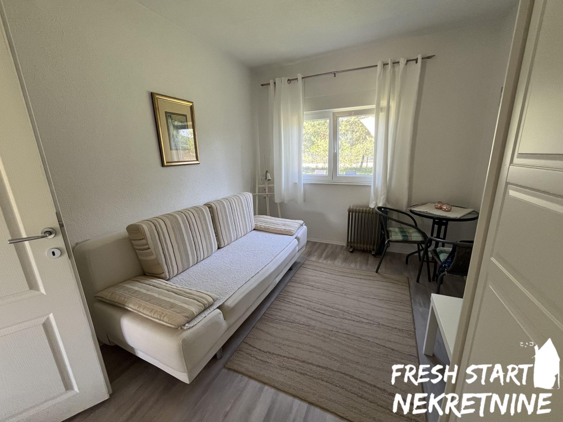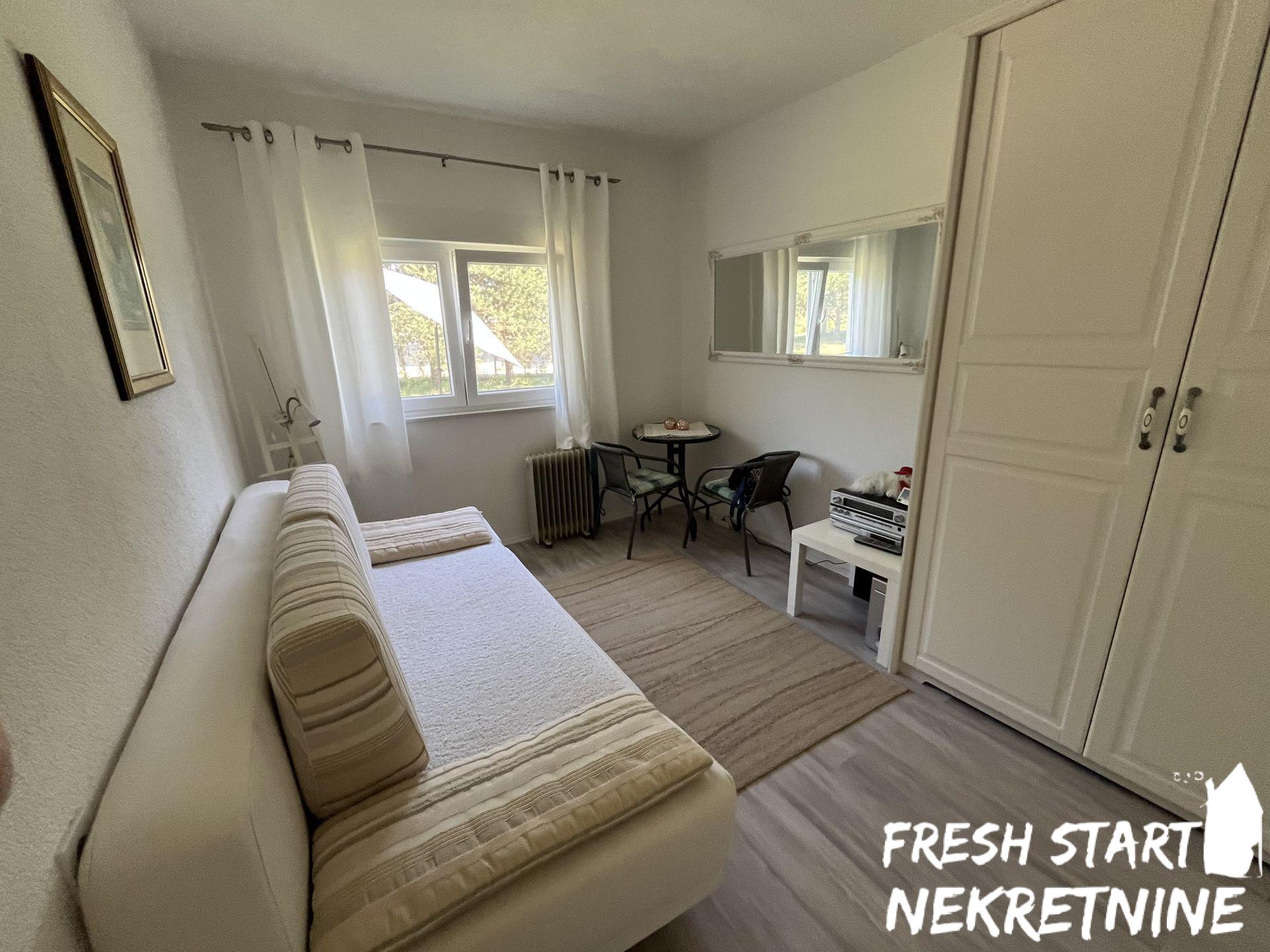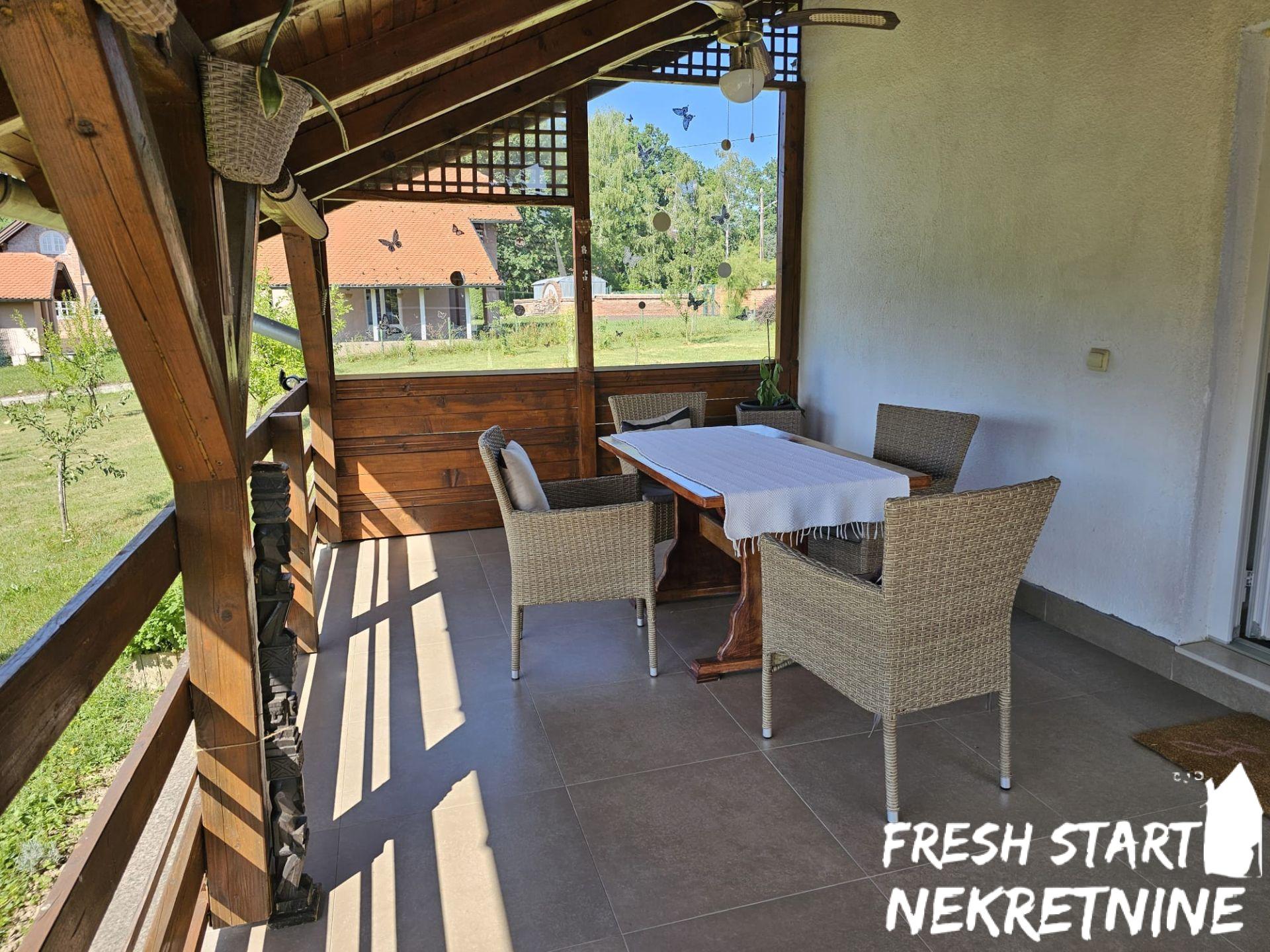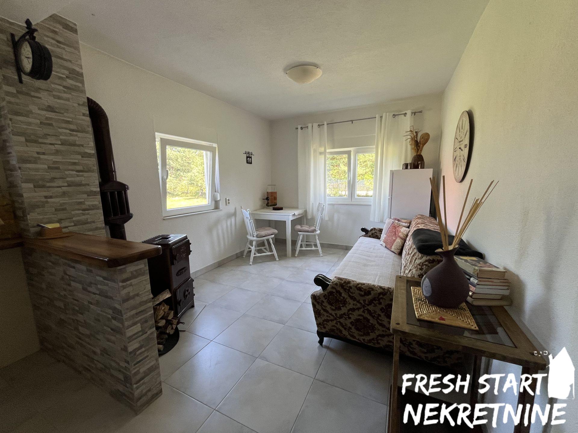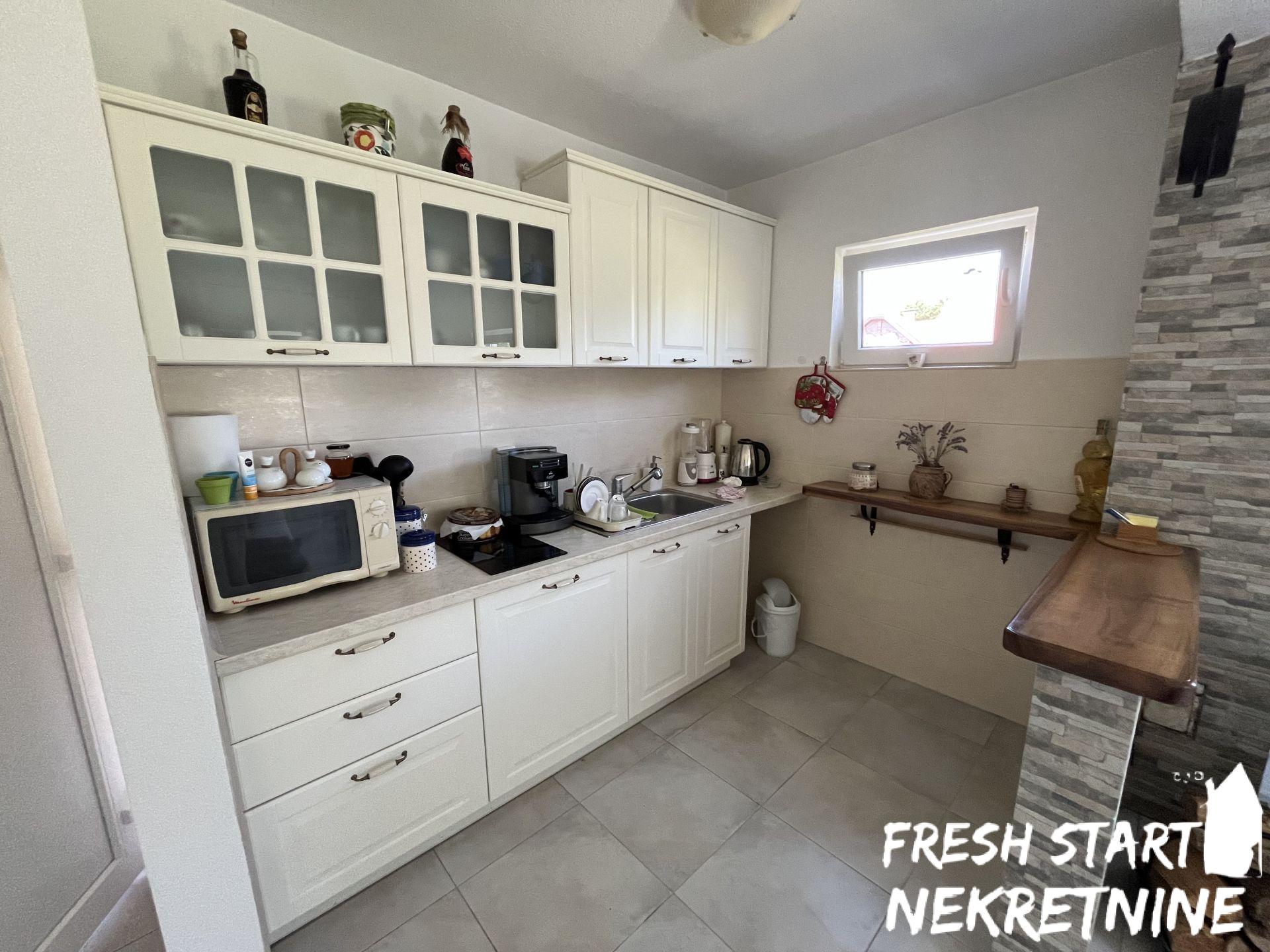 Vikendica je u potpunosti renovirana 2020. i spaja tradicionalni izgled sa modernim komforom. Nalazi se na velikom placu od 1488 m², što pruža dovoljno prostora za privatnost, baštu ili dodatne sadržaje. Objekat ima površinu od 56 m² i sastoji se od dnevnog boravka, spavaće sobe, kuhinje, kupatila i manjeg hodnika. Sve je pažljivo uređeno za opuštanje i udoban boravak. Vikendica se prodaje u potpunosti namještena.