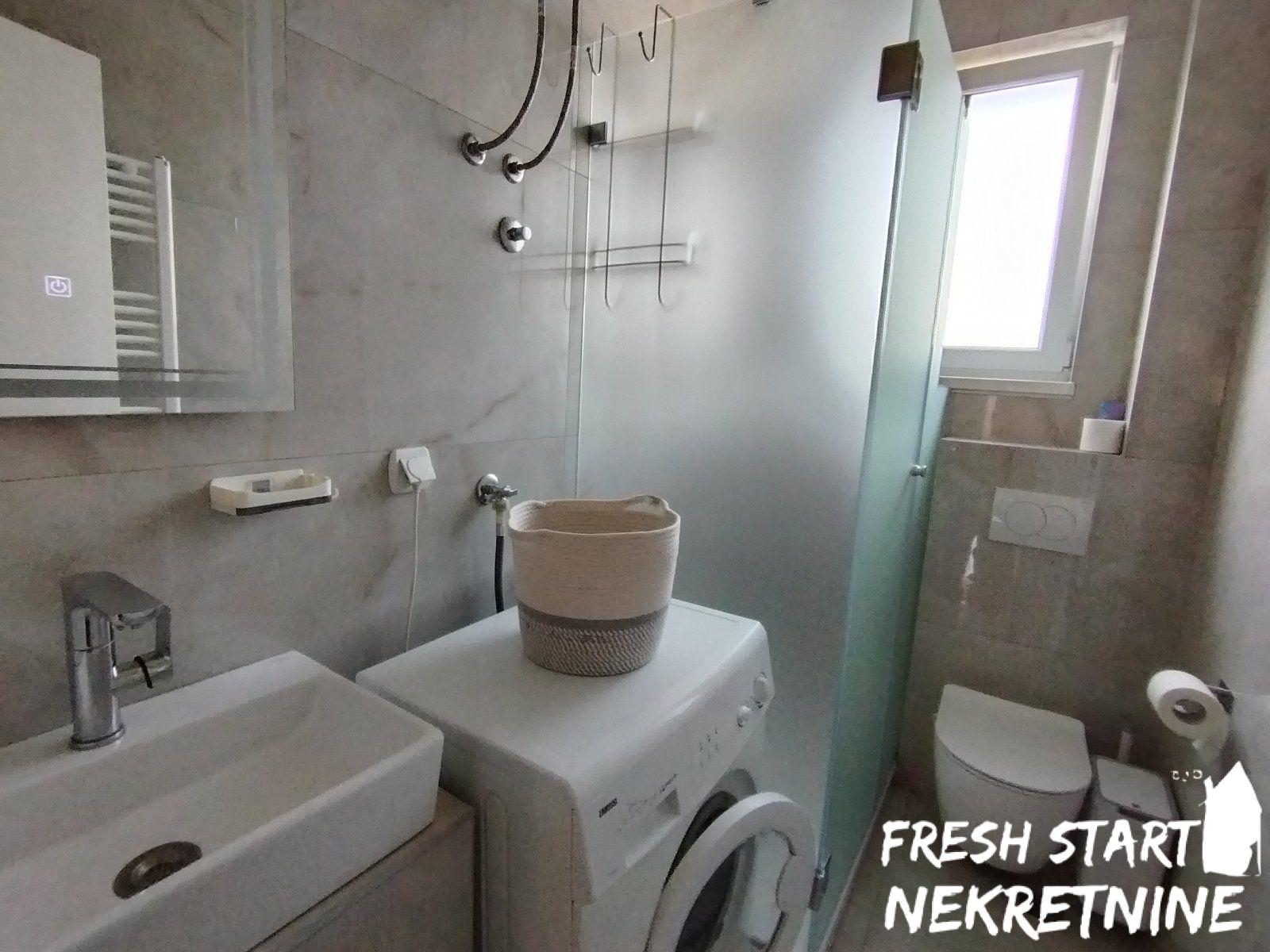Stan se iznajmljuje potpuno namješten (kuhinja je opremljena svim suđem), lokacija je predobra, blizu svega - banka, pošta, vrtić, škola, park, marketi, restorani.