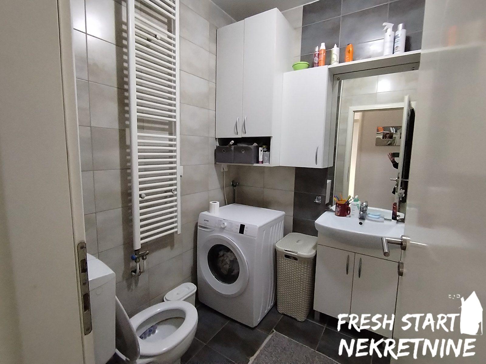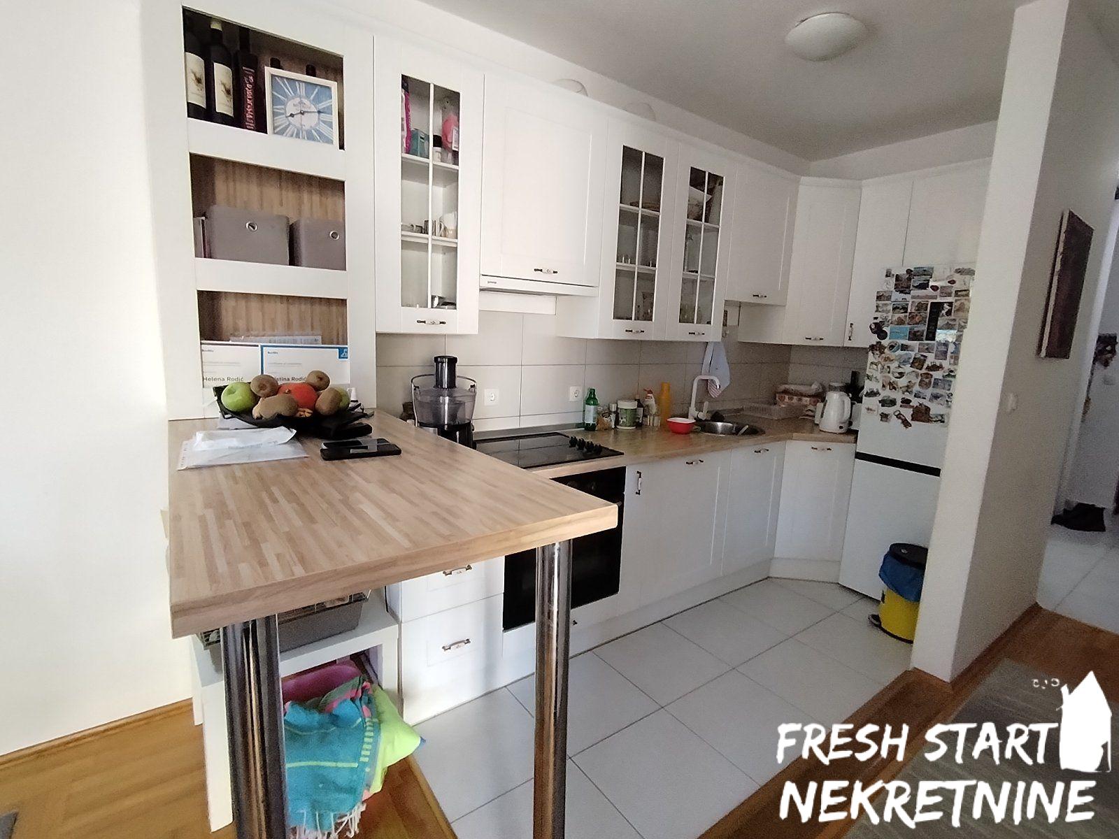Kompletno je namješten i pored mašine za veš, ima i sušilicu i mašinu za pranje suđa. Atmosfera u stanu je topla, namješataj i svi detalji su pažljivo birani. U cijenu ulaze sve stvari izuzev klavira i slika.