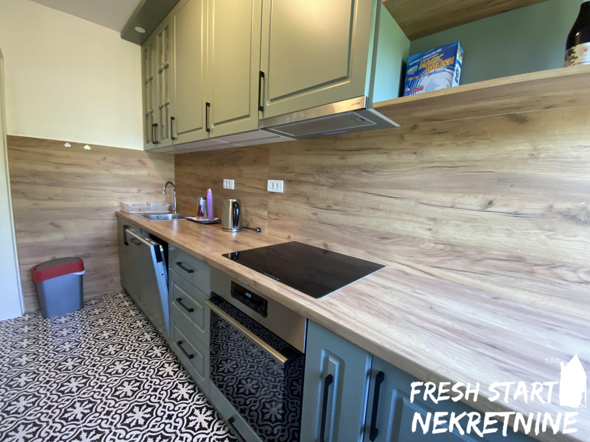 • Funkcionalna kuhinja s trpezarijom, koja takođe ima izlaz na manji balkon, koji pruža mir i pogled na tiši dio grada – savršeno mjesto za jutarnju kafu